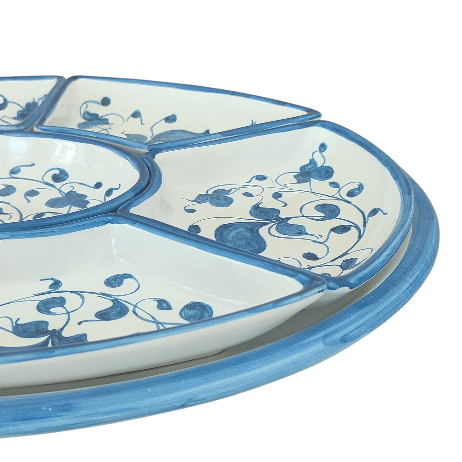 Antipastiera in Ceramiche di Caltagirone decorata interamente e mano dai Maestri Giorgio e Ivano Alemanna nel proprio laboratorio di Caltagirone.