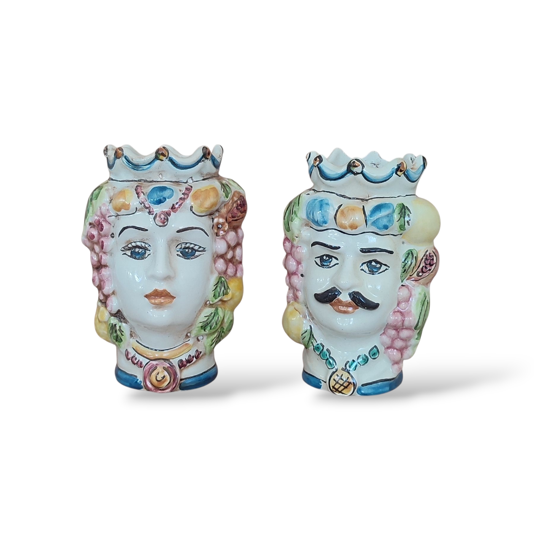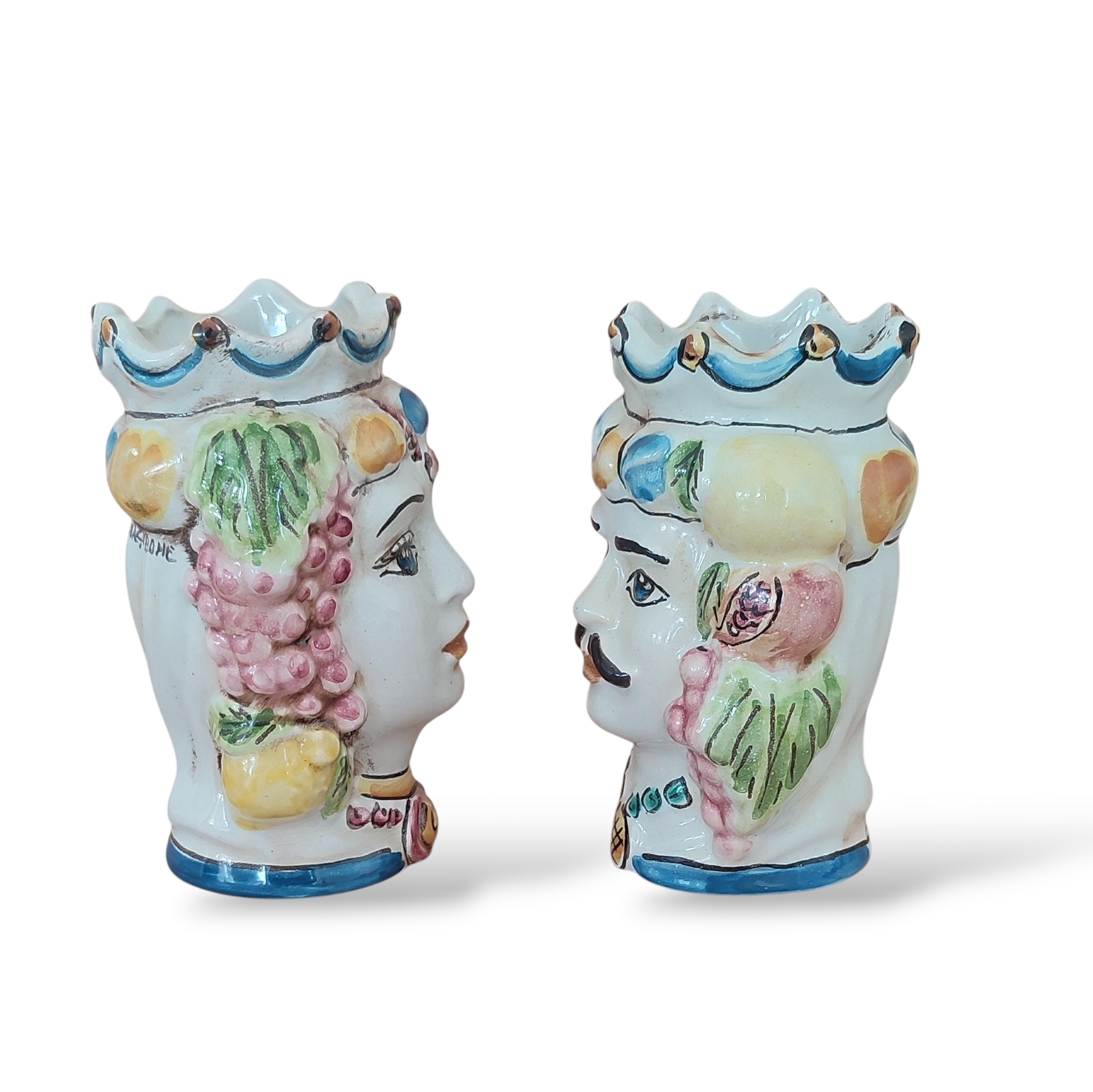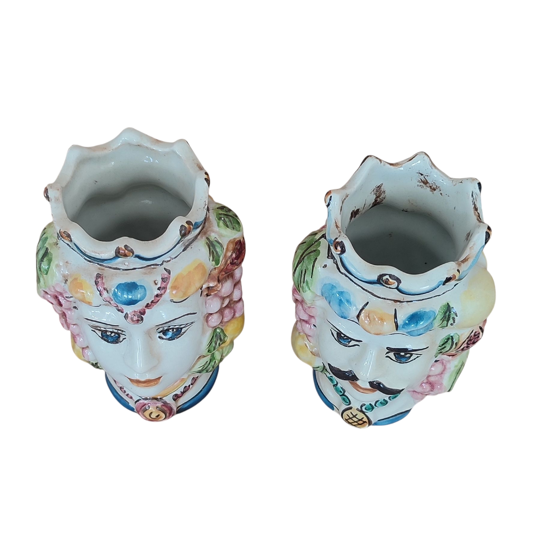 Coppia Teste di Moro con frutta in Ceramica di Caltagirone h 13