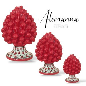 Splendida Pigna a lampada in Ceramica di Caltagirone. Completa con paralume di cotone bianco. La lampada è Forgiata e decorata interamente a mano e se ne certifica l’autenticità. Completa con cablaggio elettrico E27 e paralume in stoffa bianco.