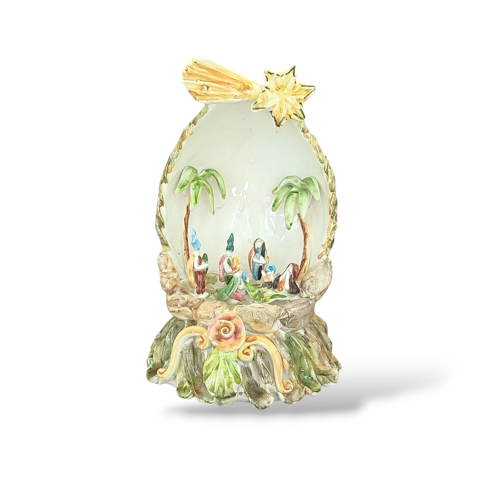 Presepino da collezione, realizzato interamente a mano e certificato Forgiato a mano e maiolicato con colori tenui e delicati, massima espressione della Tradizionale Ceramica di Caltagirone. Finitura in Maiolica. Pezzo Unico.