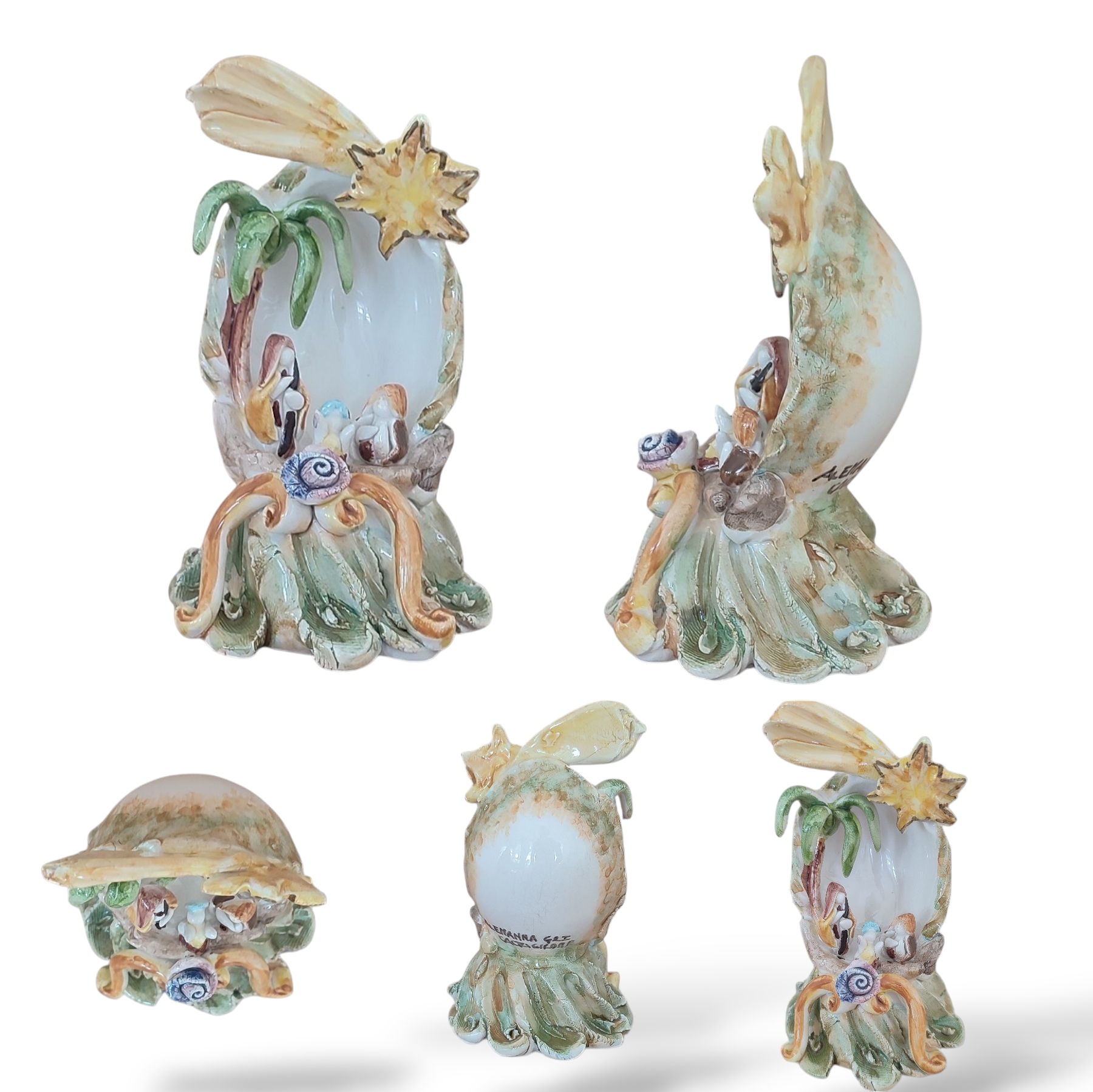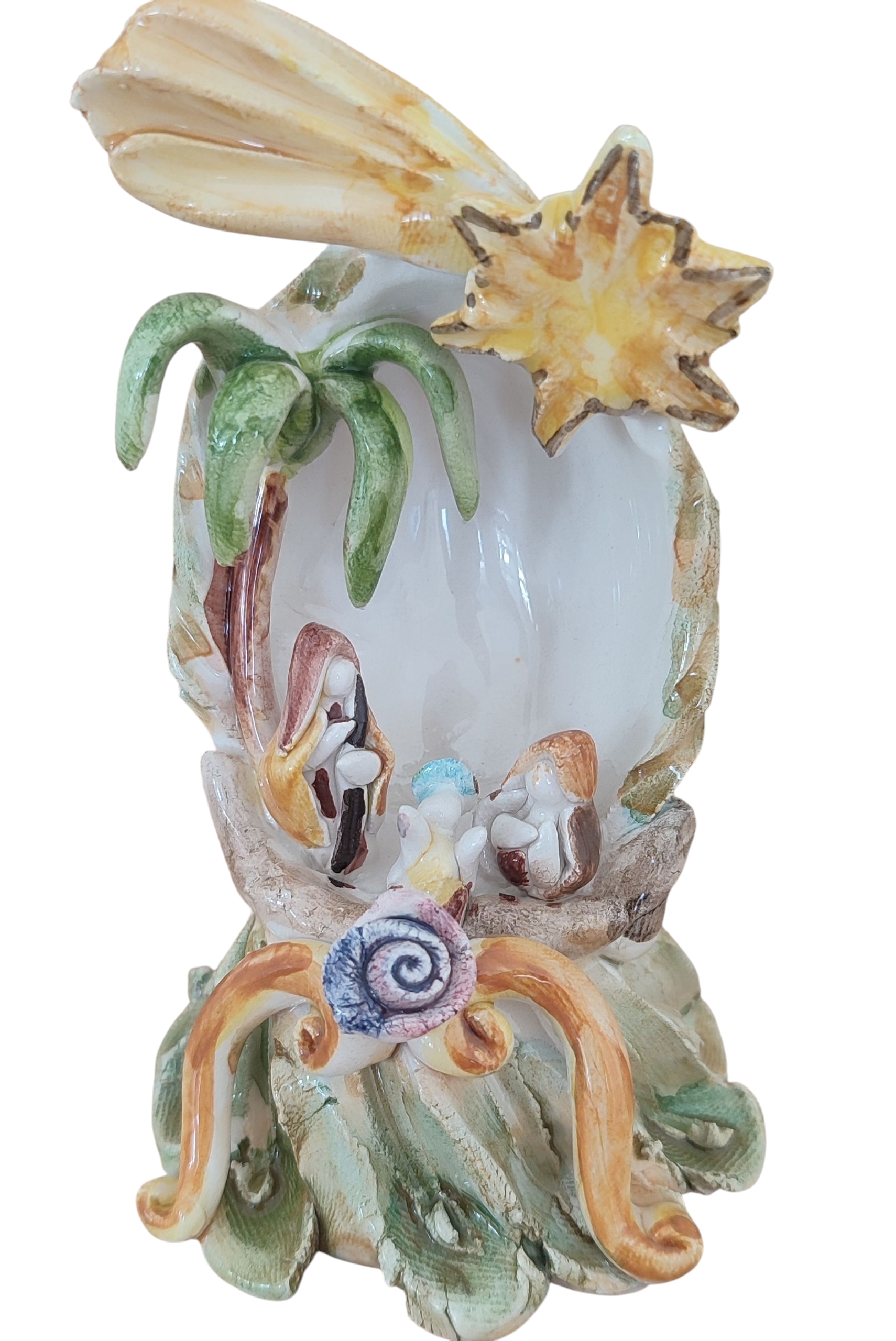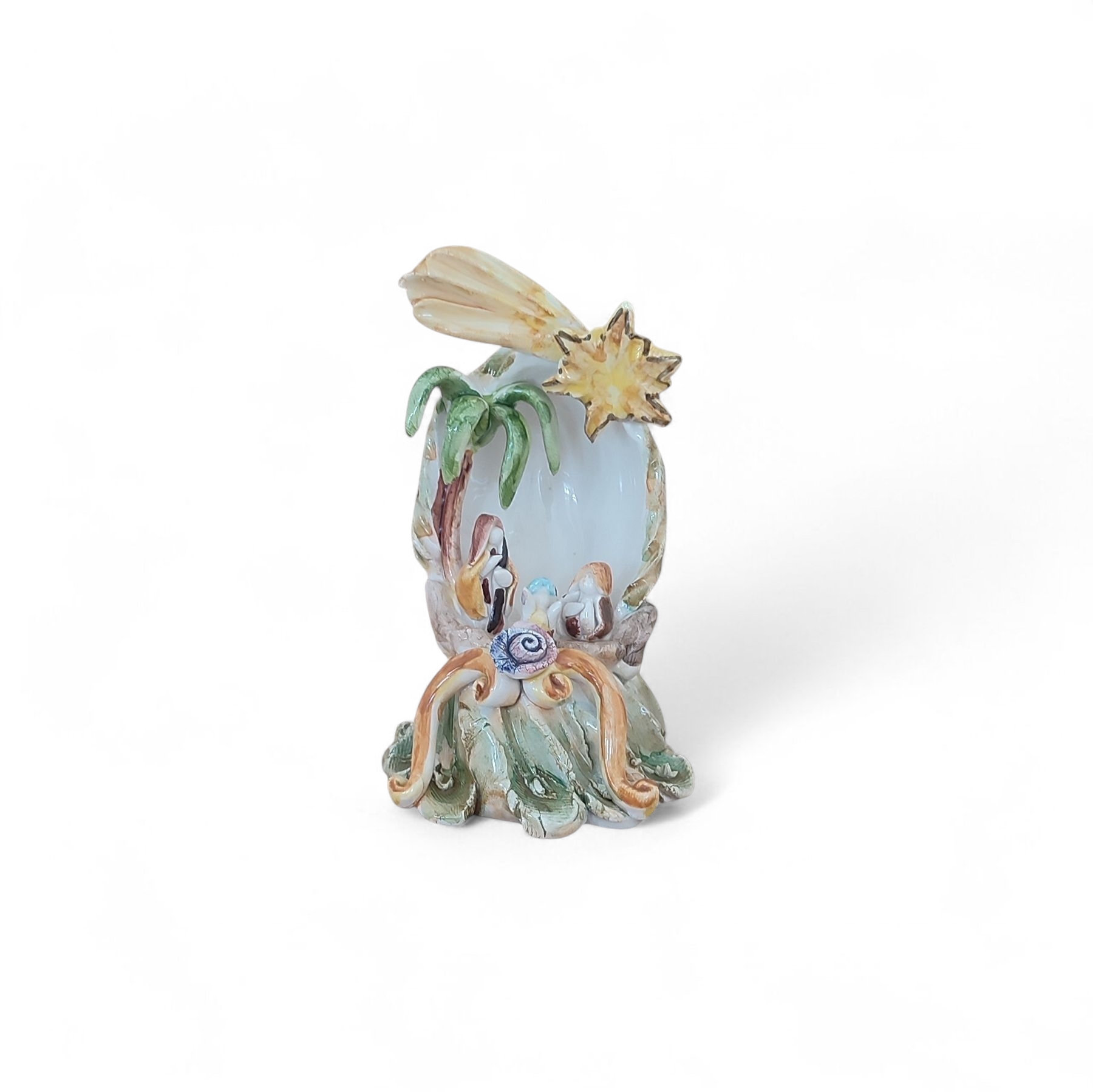 Presepino da collezione, realizzato interamente a mano e certificato Forgiato a mano e maiolicato con colori tenui e delicati, massima espressione della Tradizionale Ceramica di Caltagirone. Finitura in Maiolica. Pezzo Unico.